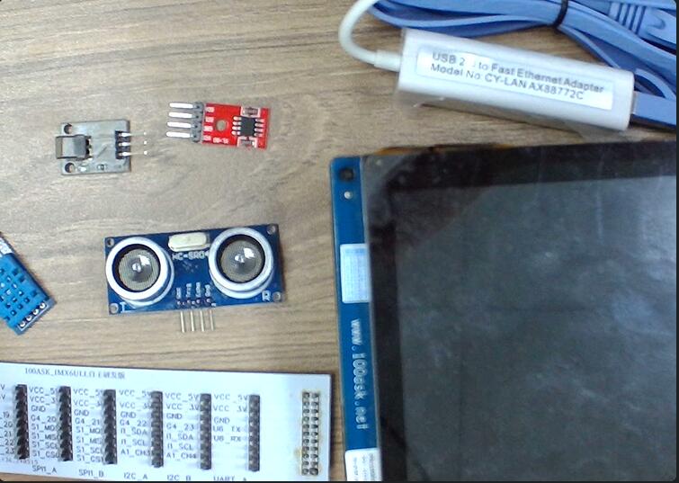 5.硬件 开发项目的硬件资源有:imx6ull开发板,IO拓展板,超声波模块,S90舵机模块,AT24C02模块,DHT11模块,HS0038红外遥控器,USB免驱摄像头